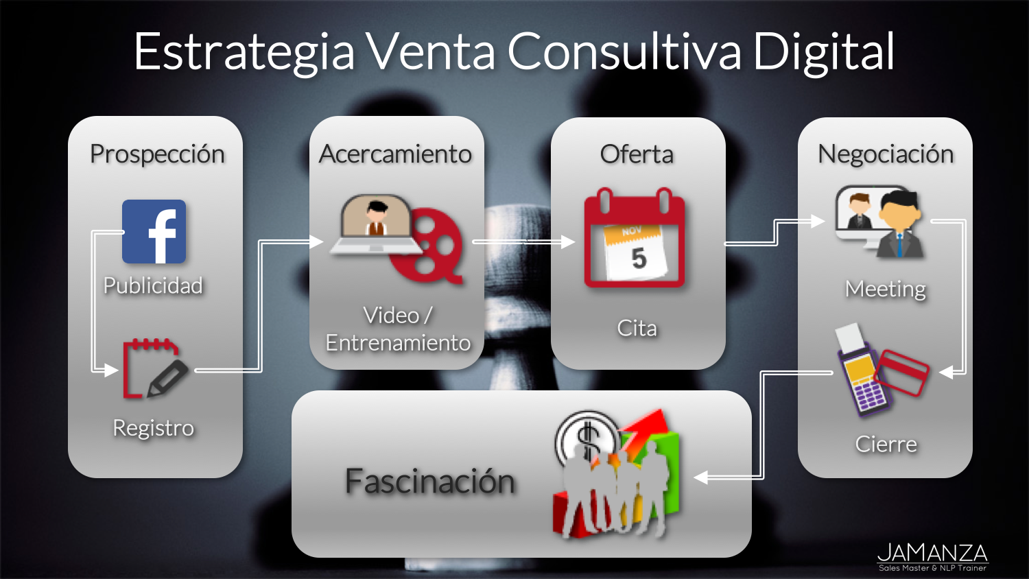 Recibirás un modelo que te permite escalar tu capacidad (tiempo) y hacer rentable (dinero) cada paso de tu proceso de prospección, acercamiento, negociación, concreción y desarrollo de tu relación con tus clientes.