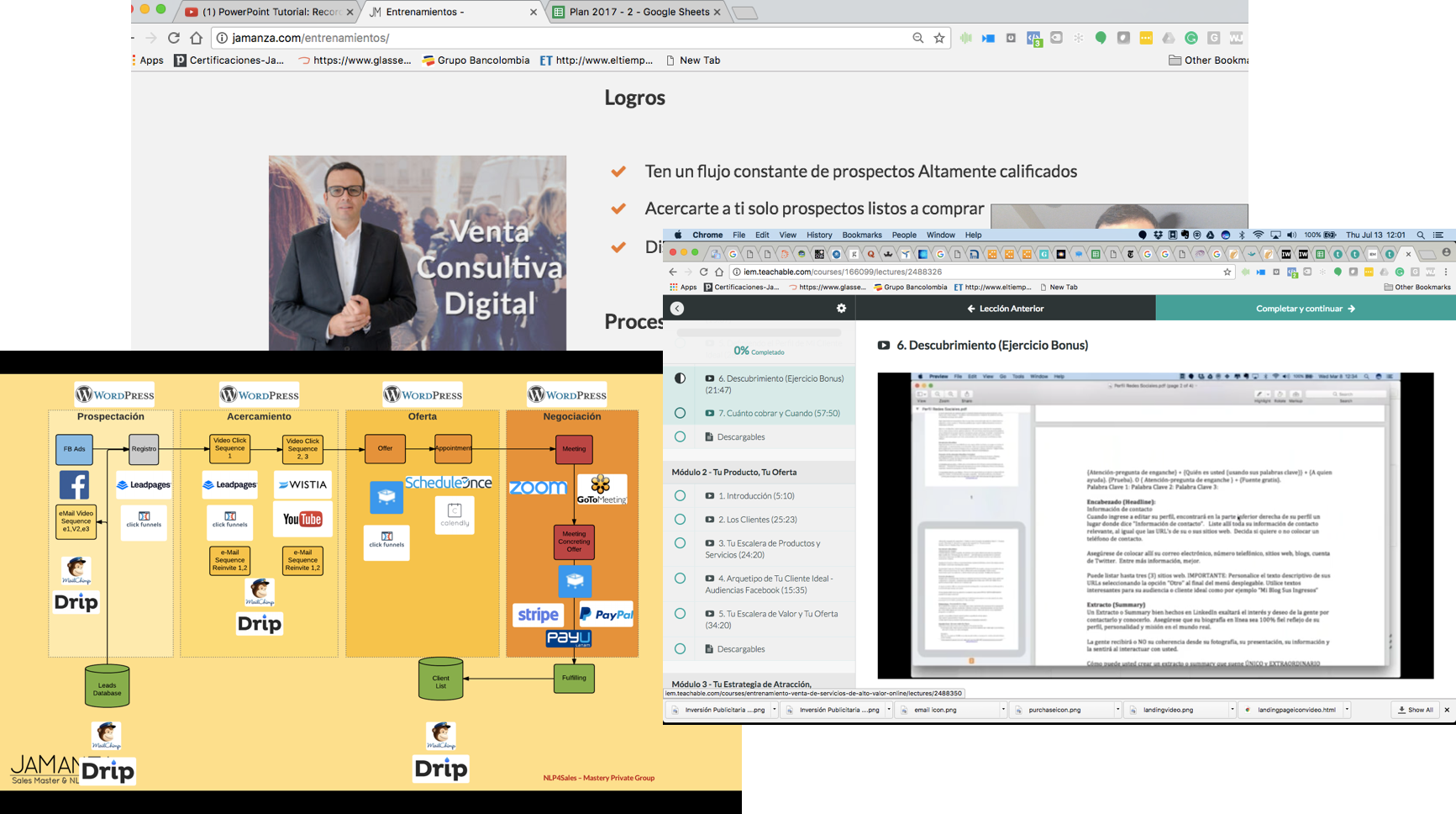 Son ocho (8) módulos, cada uno con múltiples videos, formatos, guiones, plantillas y talleres que te permitirán implementar tu Estrategia Digital